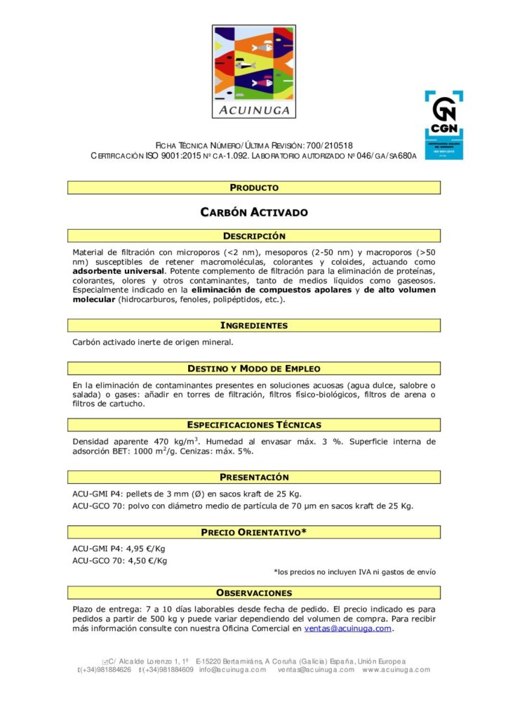 For further information, queries on other specific analyses and the preparation of a detailed offer, please contact our Laboratory at laboratorio@acuinuga.com.