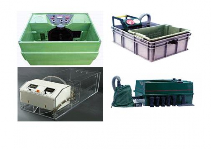 Clasificadores y contadores automáticos de huevos, de alta precisión, diseñados para seleccionar huevos de especies de peces de diferentes tamaños. Electromecánicos, utilizan fibra óptica y/o luz infrarroja para detectar huevos no fertilizados y aseguran un gran nivel de precisión (98-99%). Poseen un reservorio de hasta 30 L de capacidad para la recepción de huevos y clasificador automático, separador y contador de huevos vivos y muertos.