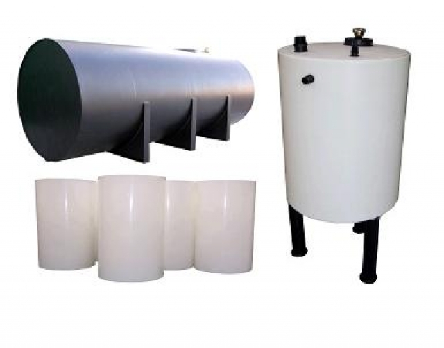 Diseño y fabricación de depósitos cónicos, cilíndricos o cúbicos construidos en materiales inertes, robustos y resistentes a la corrosión, evitando cambios de sabor, olor y color de los productos contenidos y garantizando una larga vida útil. Su diseño permite soportar grandes presiones hidrostáticas, tanto en interiores como al aire libre. Idóneos para el almacenamiento de agua dulce o salada, productos químicos o dietas líquidas. Fáciles de limpiar, con superficies lisas tanto interiores como exteriores. Pequeños depósitos con escala reseñada indicando capacidad y tapa para todos los modelos (opcional). Grandes depósitos verticales u horizontales con base plana o cóncava, equipados con boca de inspección, respiradero, y tubuladuras de carga y vaciado.