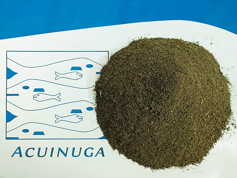 Harina procedente del refinado de macroalgas marinas de los géneros Chondrus spp., Gracillaria spp y Ulva spp. Excelente fuente de proteína vegetal con origen 100% vegetal marino, pigmentos y alto contenido en macro y microminerales (Ca, S, Mg, Fe, Zn, Mn). Producida bajo estricto control de calidad y con niveles de impureza muy bajos gracias al proceso de lavado y secado al que es sometida la materia prima.